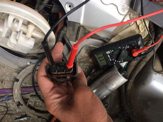 Если питание на фишке насоса присутствует, необходимо выполнить непосредственно сам насос. Его неисправности также легко диагностируются, но для этого потребуется универсальный прибор с функцией измерения сопротивления. Так как обычно обмотка и коллекторное устройство сгорает на обрыв, то можно воспользоваться примитивной контролькой. Главный симптом неисправности узла – обрыв обмоток. При измерении сопротивления оно должно быть равно 2 Ом, что соответствует максимальному току потребления 6А. Причина поломки БН в случае обрыва может заключаться в мусоре, из-за которого заклинило роликовый механизм. Если не работает бензонасос, то для его проверки мультиметром необходимо: