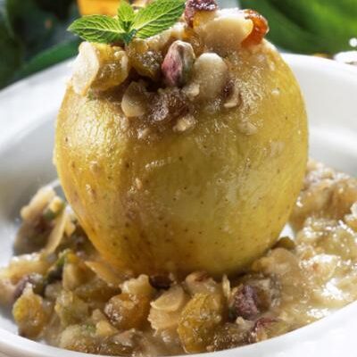 Ингредиенты: 4 крупных яблока, ? стакана изюма, 2 ст.л. повидла, 1/5 стакана растительного масла. Приготовление: Яблоки промыть, вырезать середину так