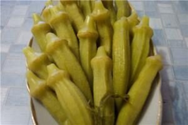 Ингредиенты (на банку 1л): 450 г стручков бамии, 170 г мелких томатов, 230 мл томатного сока, солить по вкусу. Приготовление: Стручки бамии очистить от