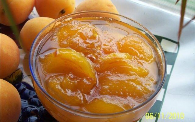 Ингредиенты: спелые абрикосы – 750 гр., сахар – 375 гр. (на 2 части фруктов – 1 часть сахара), распущенный желатин – 3-4 ст.л., абрикосовый ликер или водка – 3-4 ст.