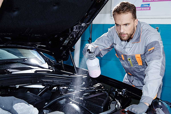 - Предостережения: Избегайте попадания средства на пластиковые и резиновые детали. Не применяйте средство на горячем двигателе или под прямыми солнечными лучами.