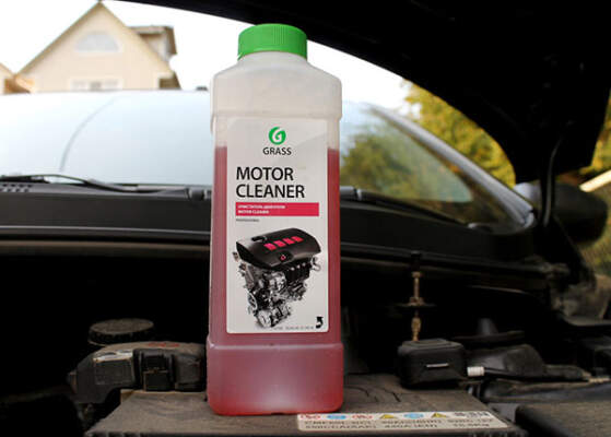 - Преимущества: Grass Engine Cleaner эффективно удаляет жир, масло и грязь, не оставляя следов.