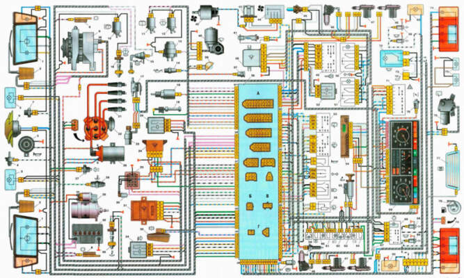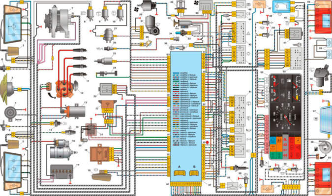 В версиях ЛЮКС тоже сложно использовать схему. Некоторые автомобили поставлялись в существенно отличающихся комплектациях, которые заказывал сам покупатель. Поэтому в электрике могут отсутствовать отдельные второстепенные устройства. Но все важные устройства, такие как аварийная сигнализация, обязательно присутствуют.