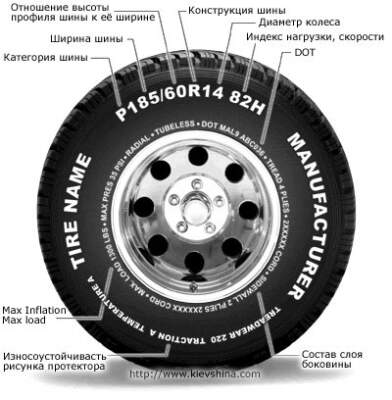 Приведем пример маркировки автомобильных шин, выпущенных в Америке: