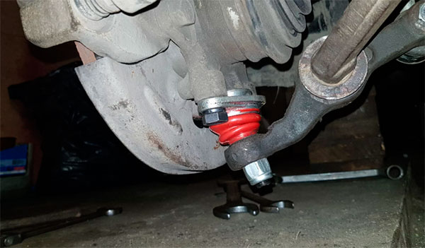 При появлении значительного износа шаровой опоры будут также наблюдаться стуки со стороны передних колес, которые могут особенно сильно проявляться во время поворота и при преодолении препятствий.