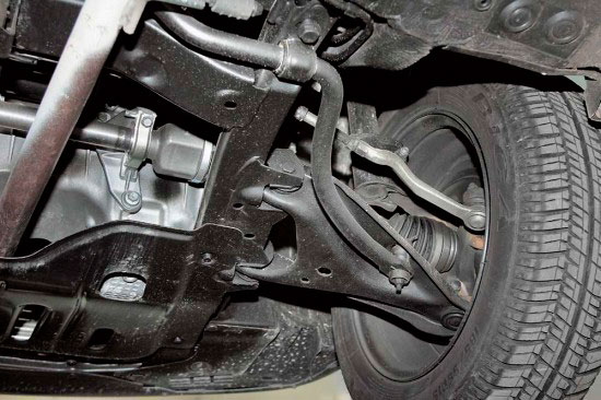 Если в результате проделанной работы будет обнаружен люфт в системе подвески автомобиля, то следует поднять автомобиль на подъемнике или поставить над смотровой ямой и с помощью монтировки проверить наличие люфта в каждом шарнирном соединении.