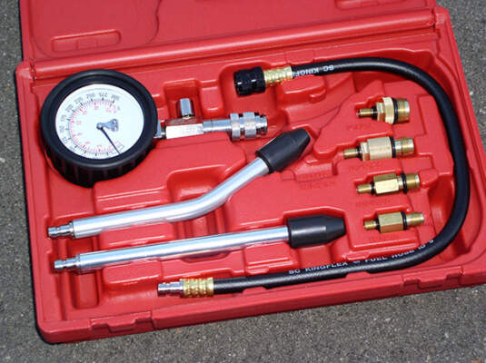 Компрессометр обычно состоит из манометра и приспособления для подключения к цилиндру. Манометр показывает давление в барах или пси. Подключение к цилиндру осуществляется через гнездо свечи зажигания.