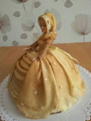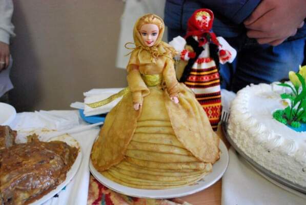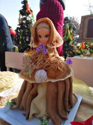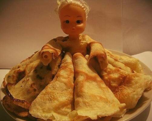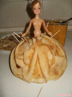Кукла из блинов (вернее, кукла в платье из блинов) – более эффектный вариант блинной бабы. Вариант, так сказать, «облагороженный» и «изысканный». Мастерицы умудряются создать из блинов такие наряды, которые смотрятся поистине шедеврально. Однако, зная секреты этого искусства, можно своими руками сделать к Масленице куклу из блинов.
