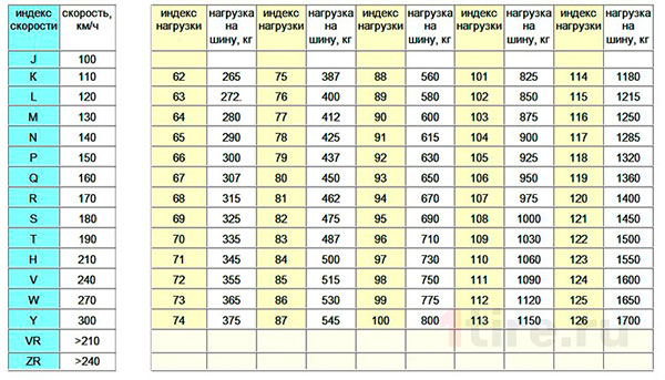 Расшифровать индекс скорости и индекс нагрузки можно по специальным таблицам.
