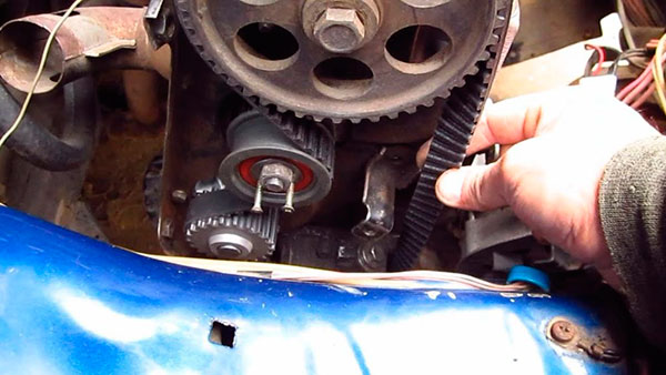 Для того чтобы двигатель заработал после замены ремня, необходимо установить метки на маховике. А что делать, если вы обнаружили неисправность ролика? В таком случае, лучше его как можно скорее заменить на другой. Несмотря на то, что это разумнее делать в любом случае, чтобы не было проблем с наличием ремня. Если это сделать не получается, попробуйте сделать так: гайка, которая удерживает ролик, попускается с помощью ключа на 17. На звездочке первичного распределительного вала находим метку и соединяем его с меткой вверху.
