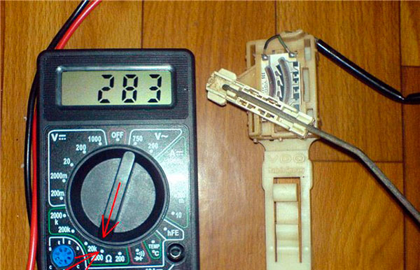 Как проверить рычажный датчик уровня топлива мультиметром