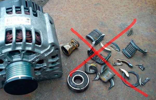 - Удары молотком или другими подручными инструментами, чтобы отвернуть крепления. Так вы повредите генератор без возможности восстановления.
