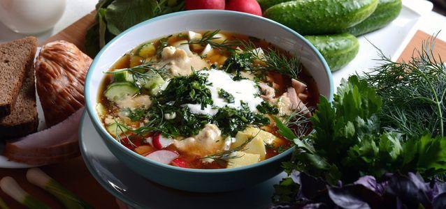 Ценители природной кухни добавляют в блюдо не только привычные сорта зелени. Попробуйте использовать ботву моркови и редиса, щавель, свежую молодую крапиву, сныть или мокрец. С ними классическая окрошка заиграет новыми красками.
