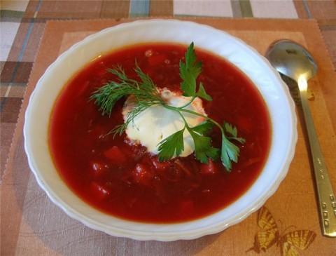 Этот борщ готовится безо всякой зажарки, с помощью микроволновки. И времени для его приготовления требуется чуть более получаса. Благодаря этому в нем