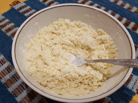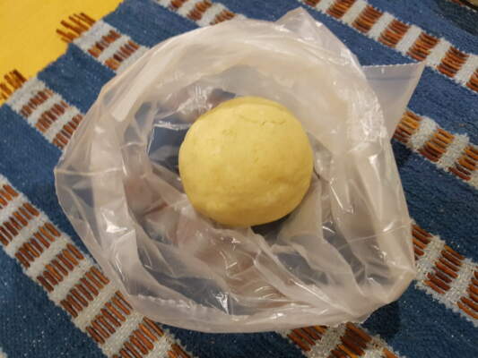 - Получившееся тесто, скатав в шар, уберите в холодильник минут на 10-15.