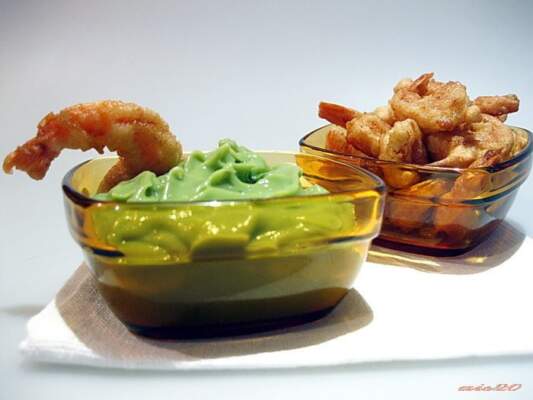 Если почистить крупные креветки таким образом, чтобы от панциря остался небольшой хвостик, то можно приготовить легкую и вкусную закуску. Приготовьте кляр — смешайте яйцо и пиво в равных долях, добавьте муки, посолите и поперчите. Пожарьте креветки, обмакивая предварительно в кляр, и красиво уложите вокруг небольшой соусницы. В качестве соуса прекрасно подходит несладкий йогурт, смешанный с горчицей и мелкими кусочками маринованного огурца.