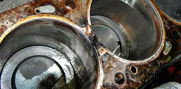 Если цилиндры в блоке распложены слишком близко, то может произойти пробитие металлической вставки в местах соприкосновения гильз. Такую поломку очень сложно идентифицировать, но положительный момент такого события заключается в том, что даже продолжительная эксплуатация мотора не приведет к его критическим повреждениям.