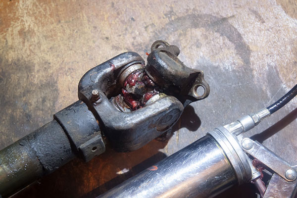 Подшипники в крестовинах кардана вращаются с большой скоростью, поэтому смазочное вещество в них быстро изнашивается и со временем приходит в негодность. Это приводит к потере смазывающих функций и как результат, разрушению механизма. Очень важно, чтобы это событие не произошло во время движения. Для исключения аварийной ситуации во время движения, нужно периодически смазывать крестовины. Для этого в них обычно имеются специальные отверстия, в которые вкручены масленки с интегрированным шариковым клапаном. Через них производится шприцовка. Полностью разбирать механизм, если нет люфта, крайне не рекомендуется, потому что его очень сложно собрать на место. Если же имеет место люфт, то шприцовка новой смазкой не поможет. Нужно произвести замену поврежденной крестовины.