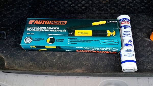 - Нужно взять, собственно, сам шприц для шприцовки крестовин.