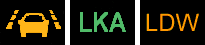 Индикаторы систем отслеживания полос движения. Мигающий жёлтый сигнал оповещает, что машина уходит в сторону и необходимо выровняться либо система неисправна.